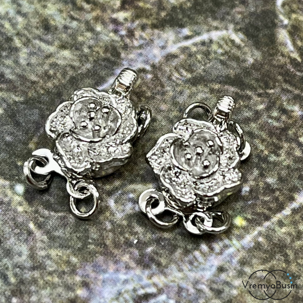 • Замок для украшений, на 2 нити, 9х12 мм, латунь с родиевым покрытием (1 шт.)