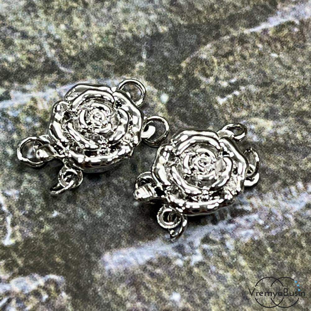 • Замок для украшений, на 2 нити, 11х13 мм, латунь с родиевым покрытием (1 шт.)