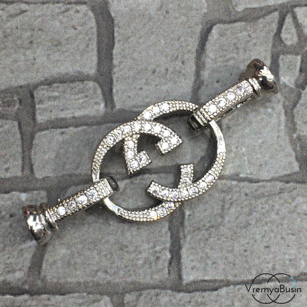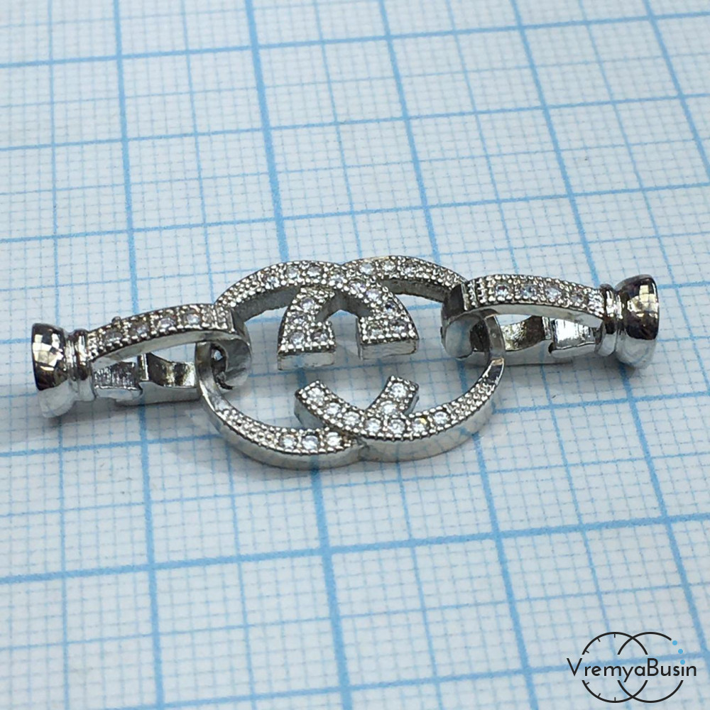 Замок для украшений, латунь с родиевым покрытием и фианитами (1 шт.)