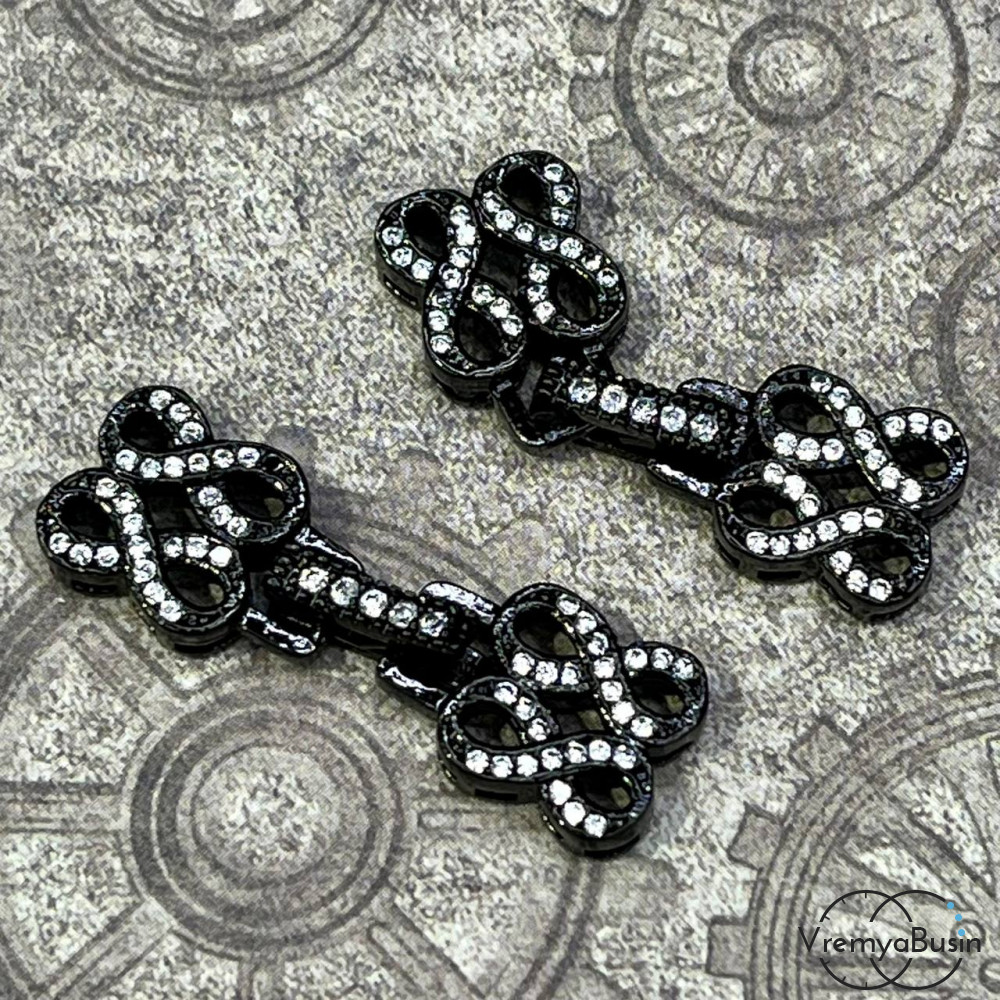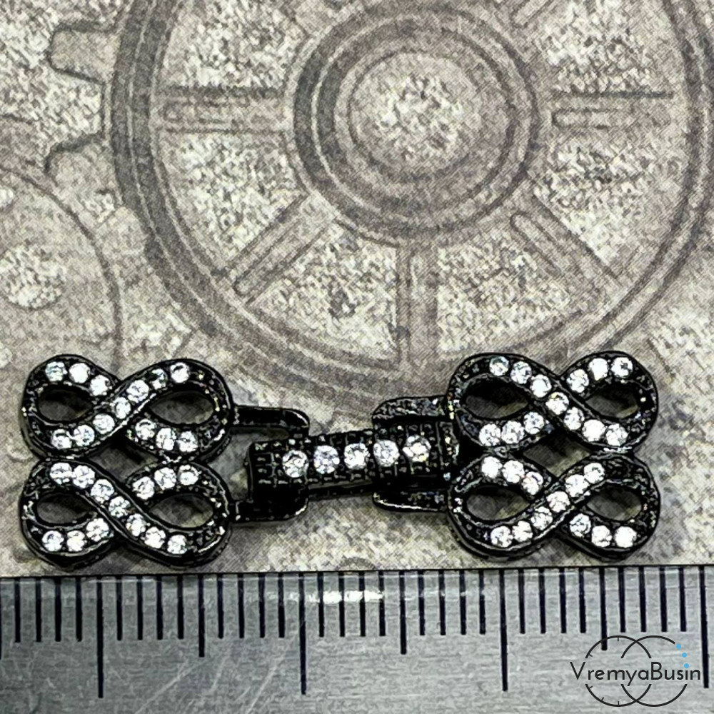 Замок для украшений, латунь с черным родиевым покрытием и фианитами (1 шт.)