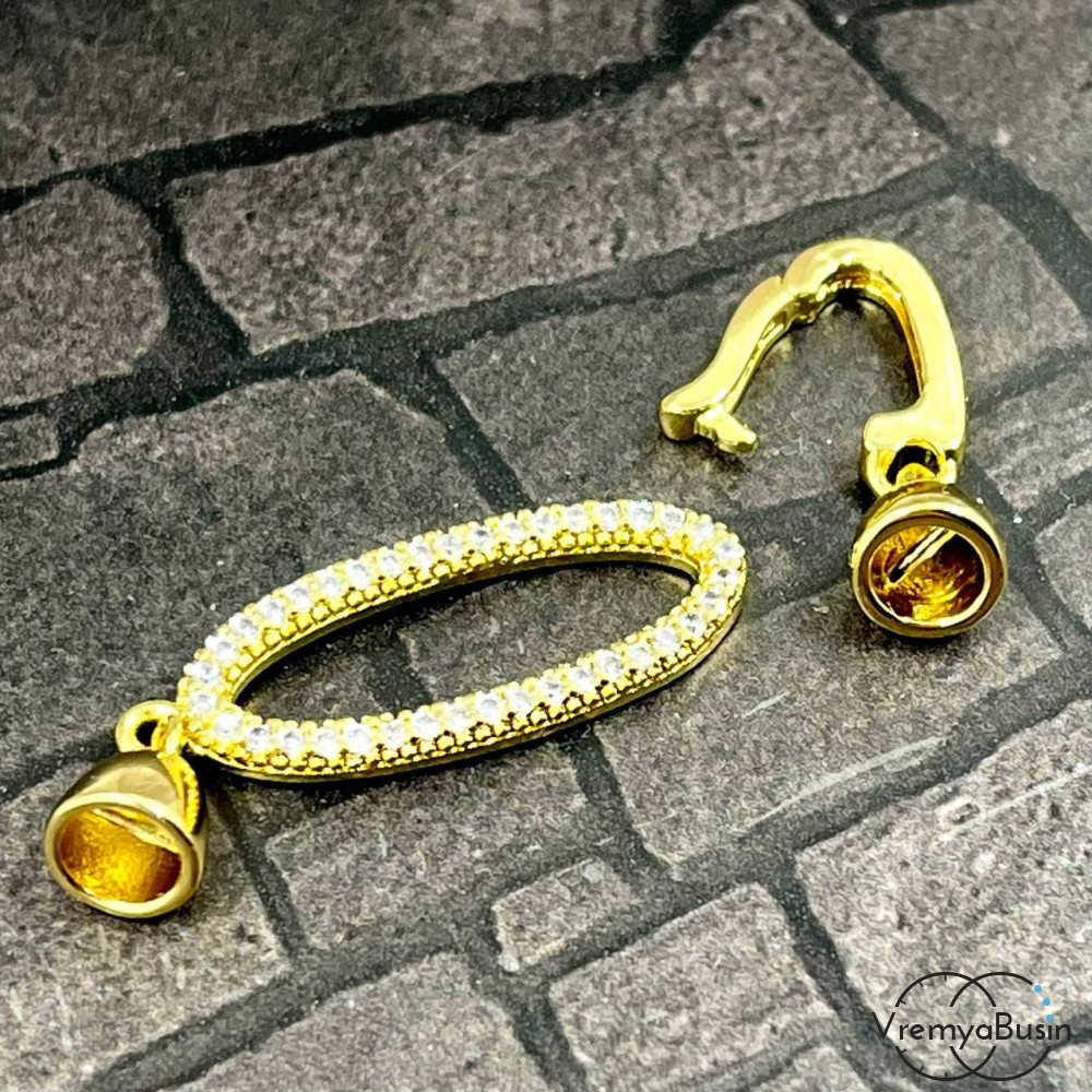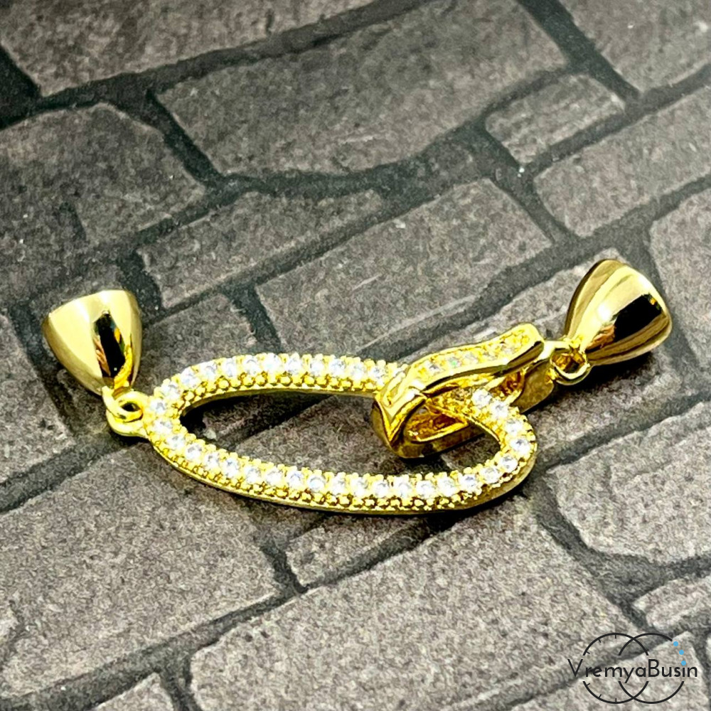 Замок для украшений, латунь с позолотой и фианитами (1 шт.)