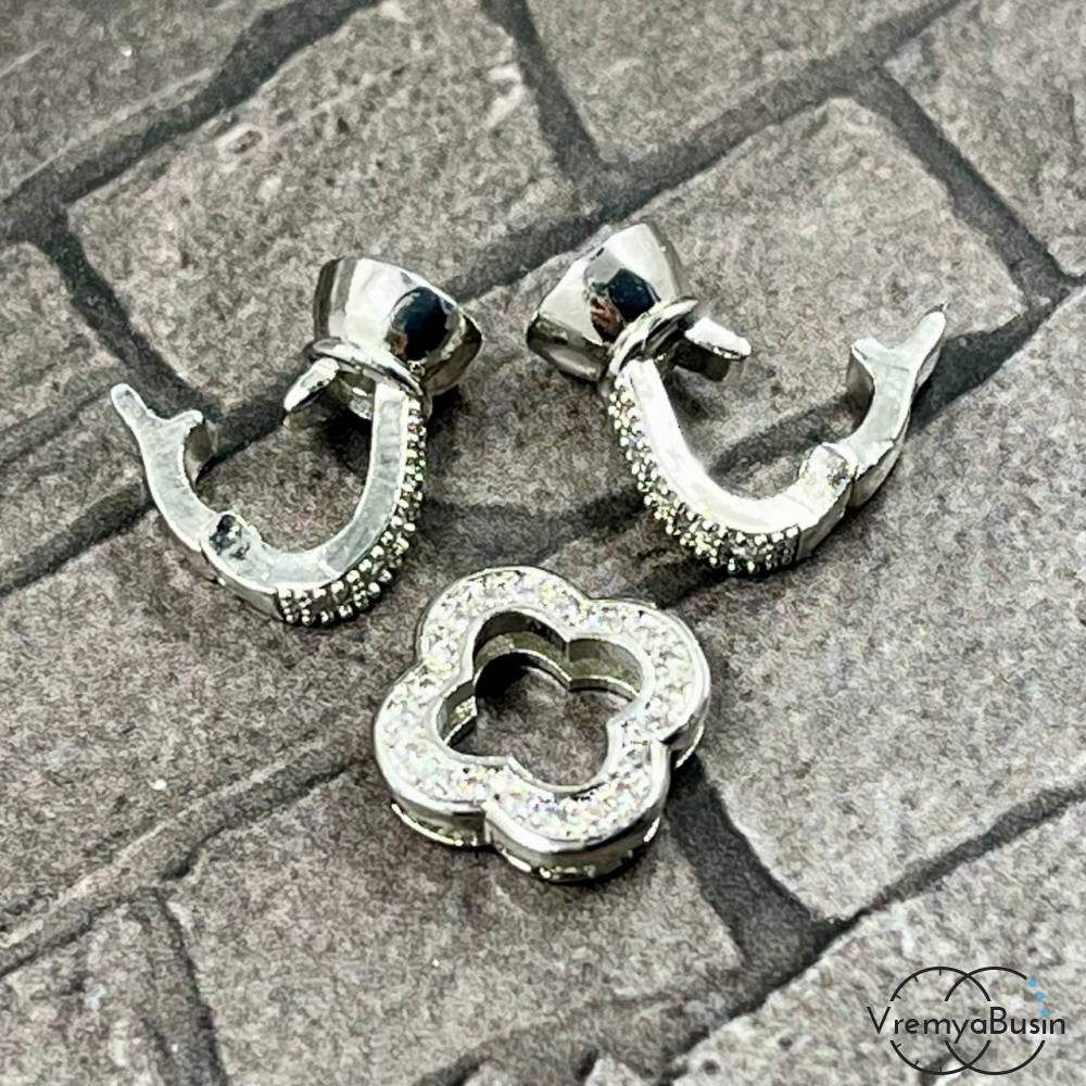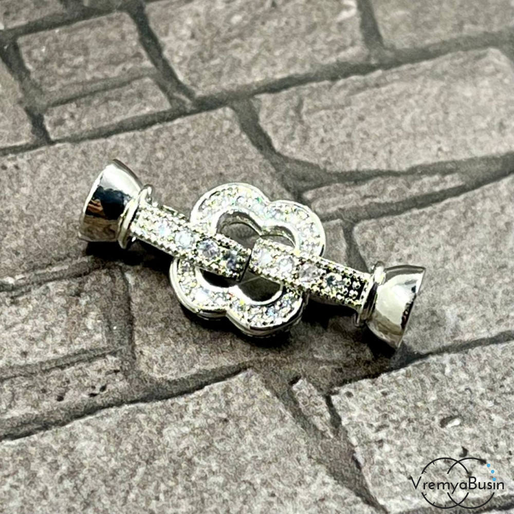 Замок для украшений, латунь с родиевым покрытием и фианитами (1 шт.)