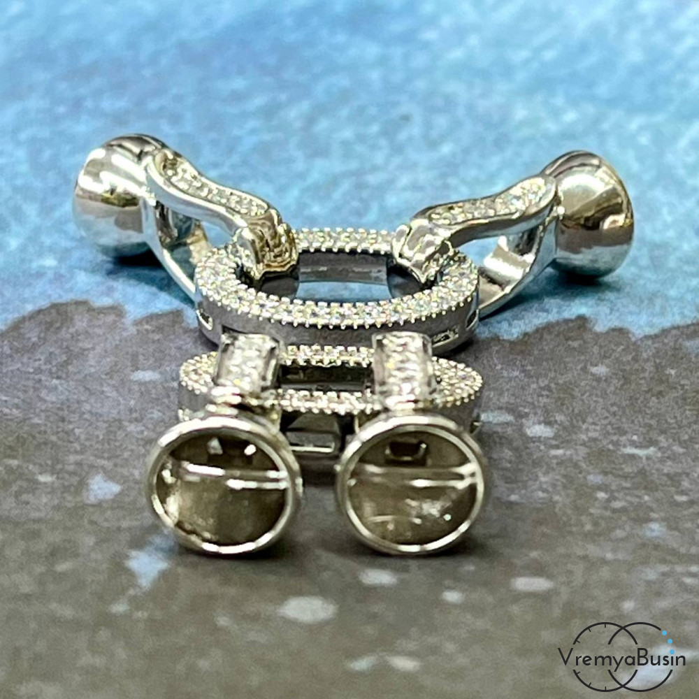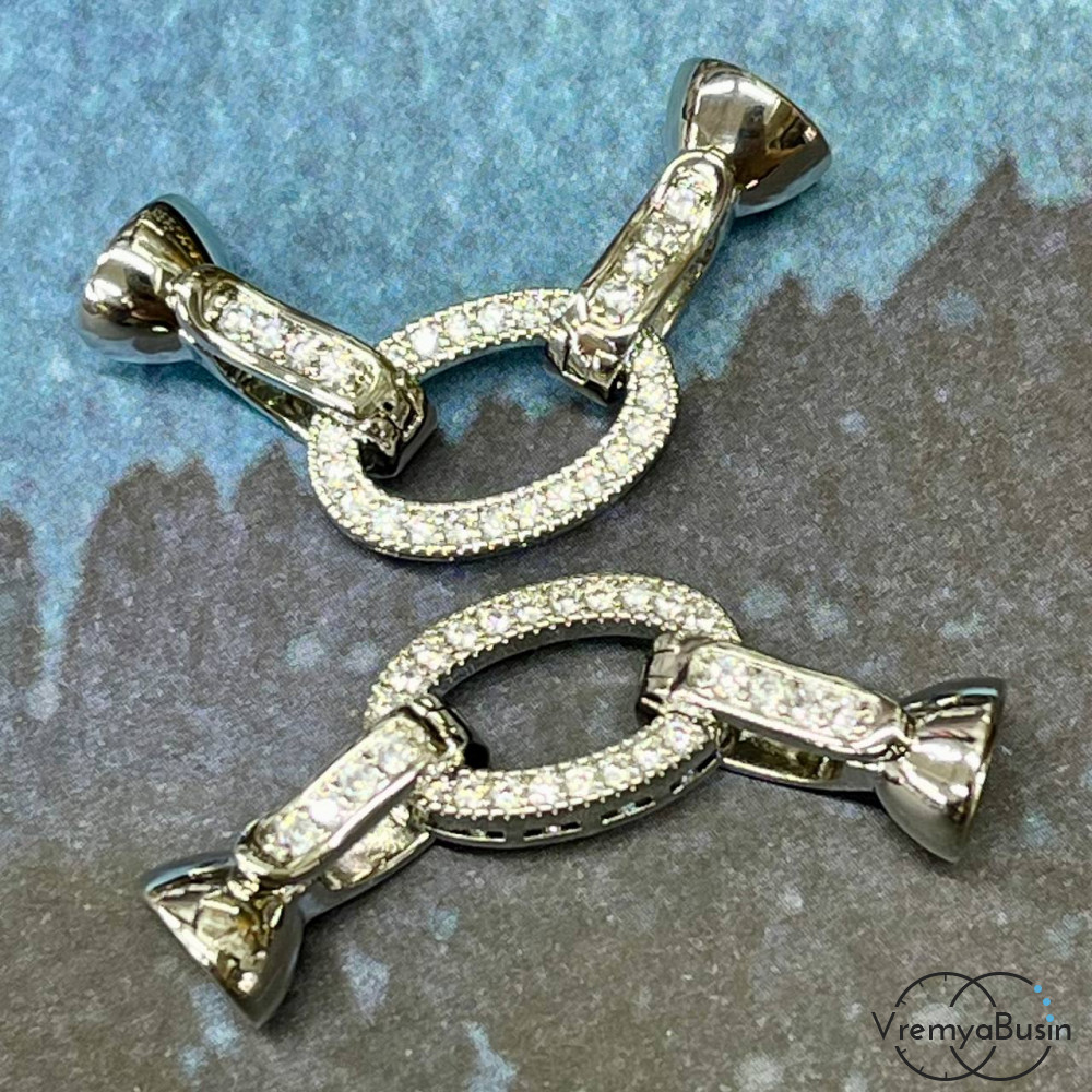 Замок для украшений, овал 10х15 мм, латунь с родиевым покрытием и фианитами (1 шт.)