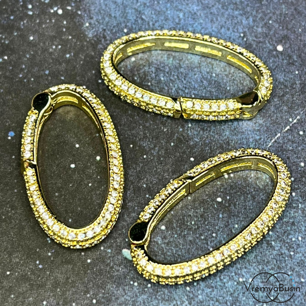 Замок-карабин с фианитами, 15х28 мм, латунь с позолотой (1 шт.)