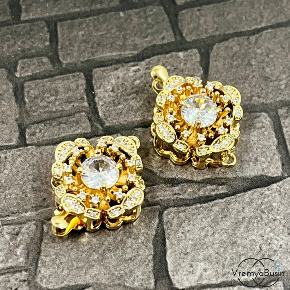 Замок на 1 нить, 16х22 мм, латунь с позолотой и фианитами (1 шт.)