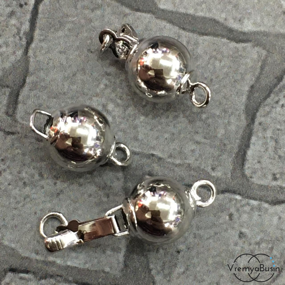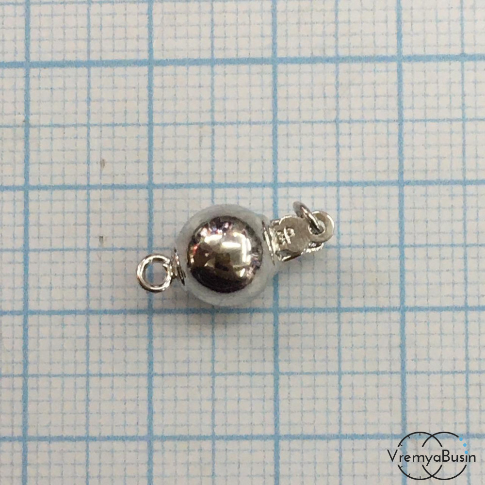 Замок-шарик с застежкой, диам. 8 мм, латунь с родиевым покрытием (1 шт.)