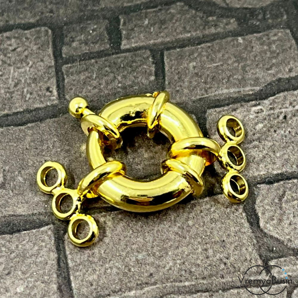 Замок "Штурвал" на 3 нити, 18 мм, из латуни с позолотой (1 компл.)
