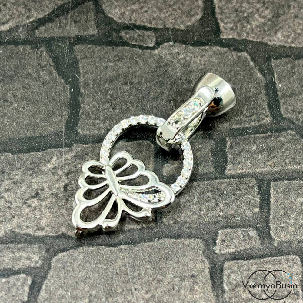 • Замок тоггл с фианитами, 30х15 мм, латунь с родиевым покрытием (1 шт.)