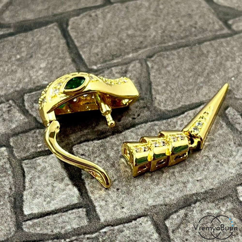 Замок-зажим "Змея", 16х10 + 25х5 мм, латунь с позолотой и фианитами (1 шт.)