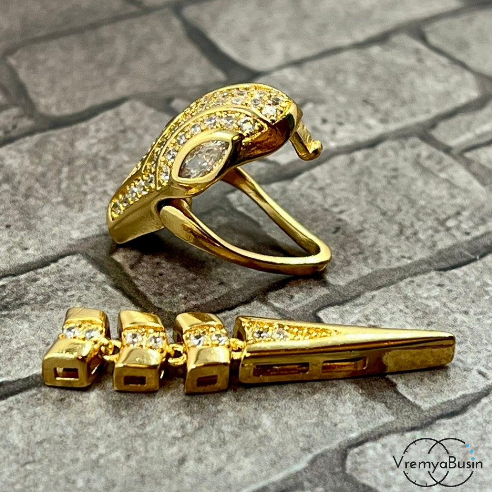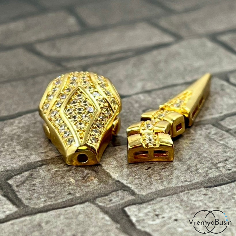 Замок-зажим "Змея", 20х12 + 30х6 мм, латунь с позолотой и фианитами (1 шт.)