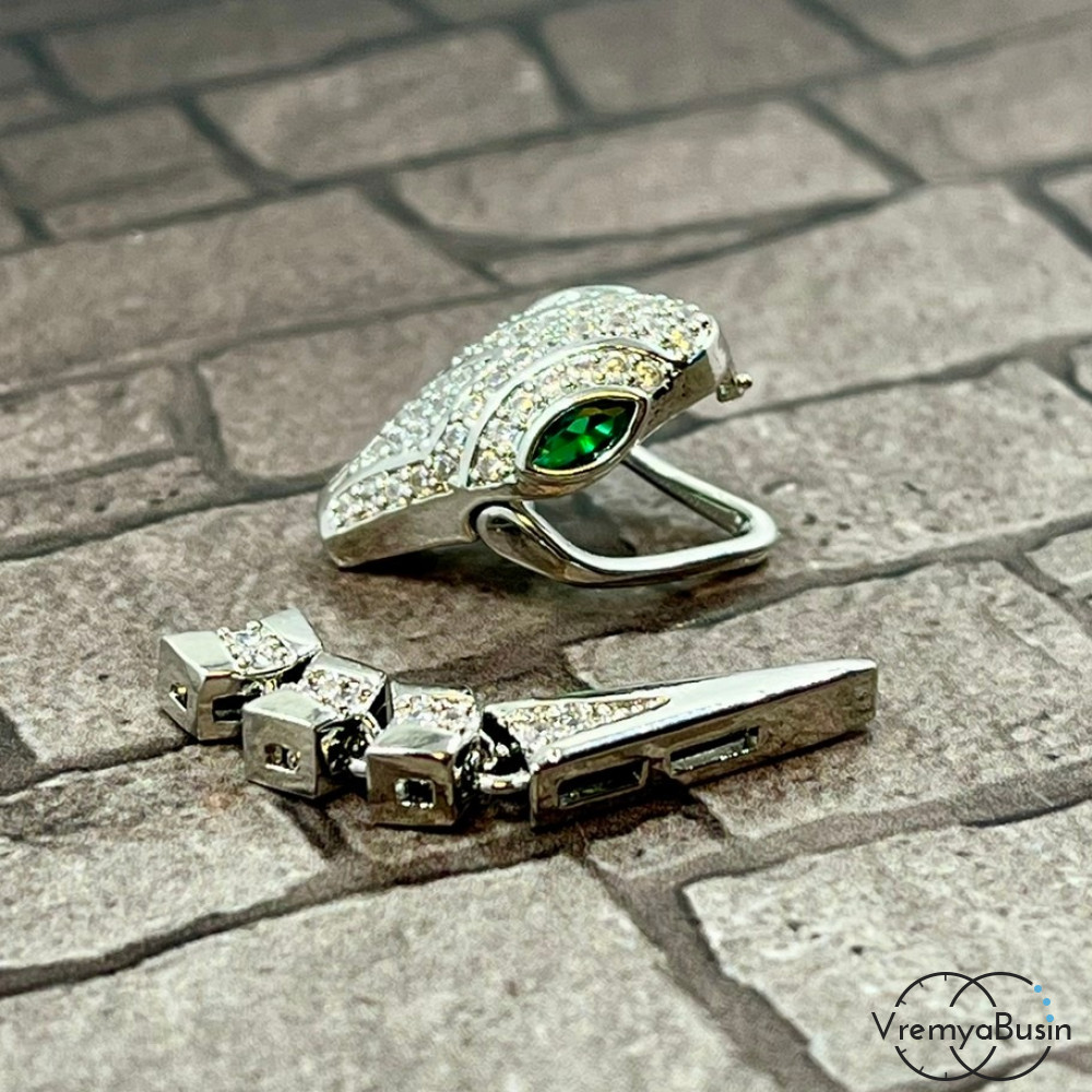 Замок-зажим "Змея", 20х12 + 30х6 мм, латунь с родиевым покрытием и фианитами (1 шт.)