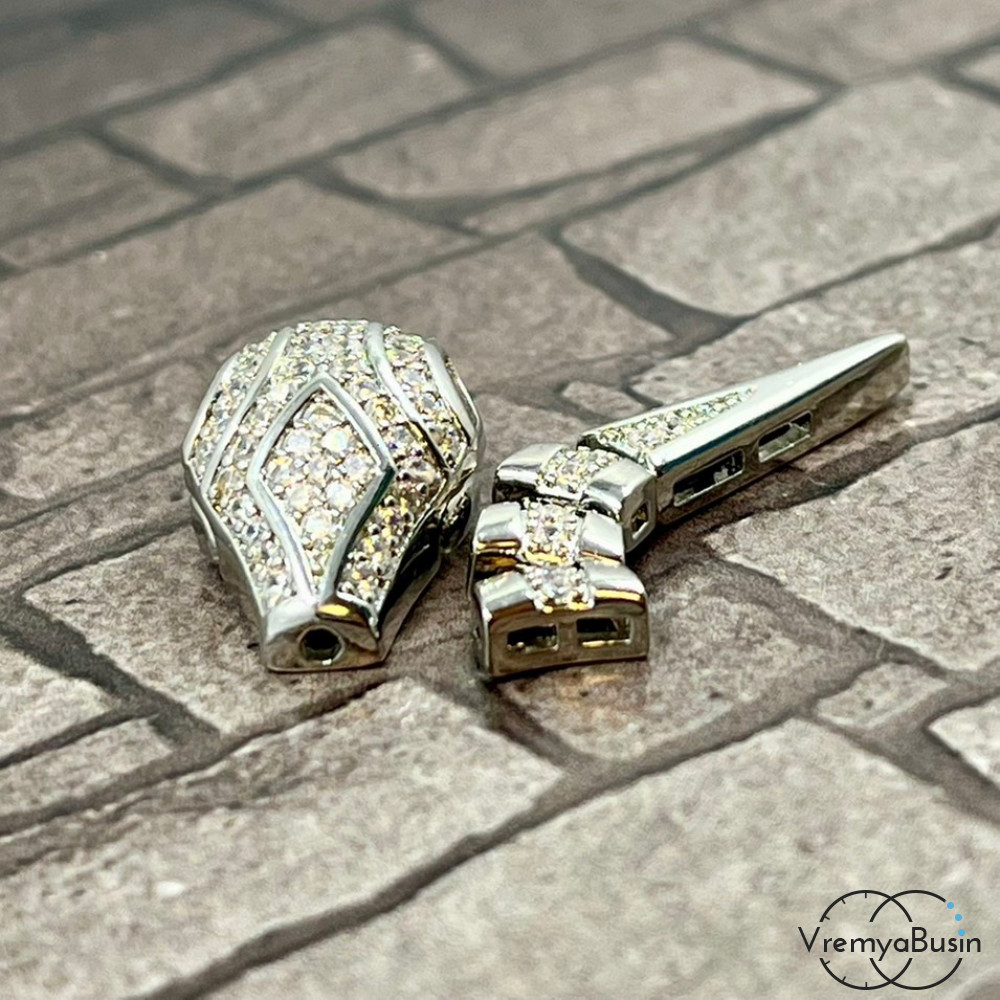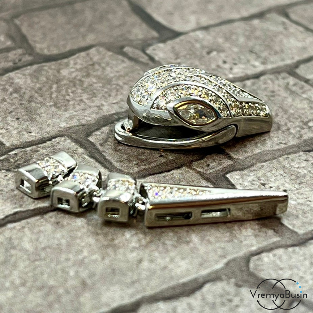 Замок-зажим "Змея", 20х12 + 30х6 мм, латунь с родиевым покрытием и фианитами (1 шт.)