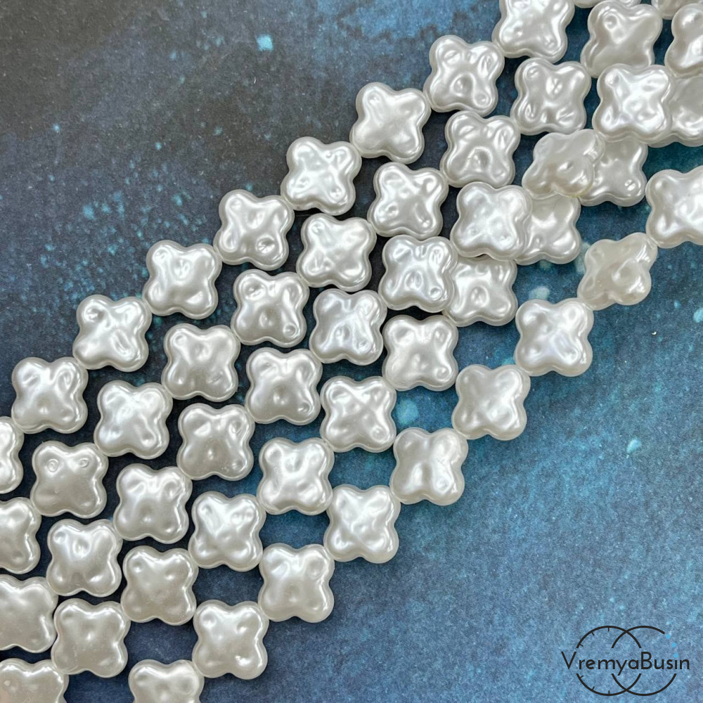 Жемчуг акриловый белый, клевер 14 мм (нить, ок. 30 шт.)