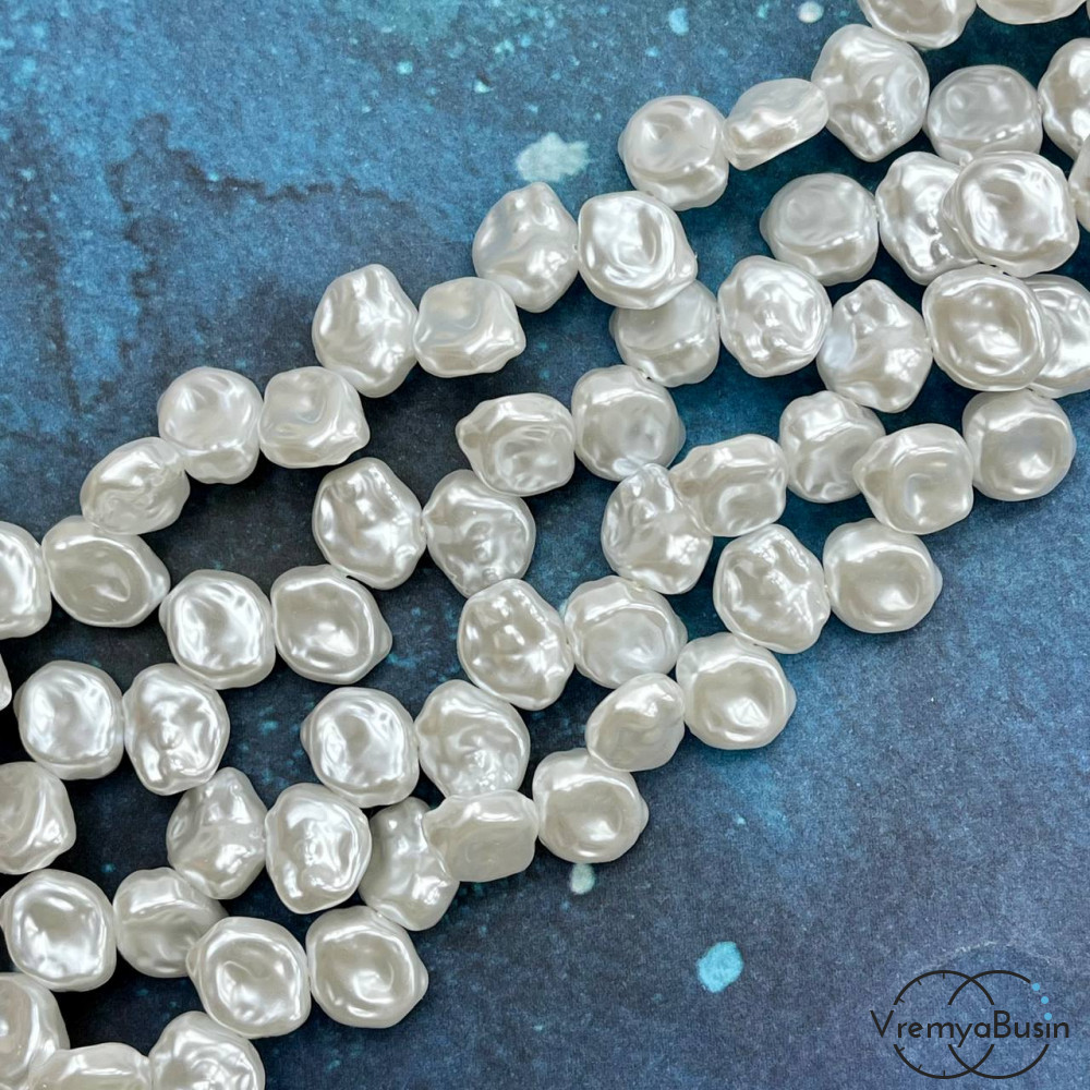 Жемчуг акриловый белый, лепесток 13х11х5 мм (нить, ок. 43 шт.)