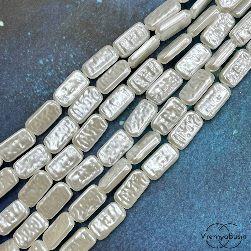 Жемчуг акриловый белый, прямоугольник 9х17х4 мм (нить, ок. 24 шт.)