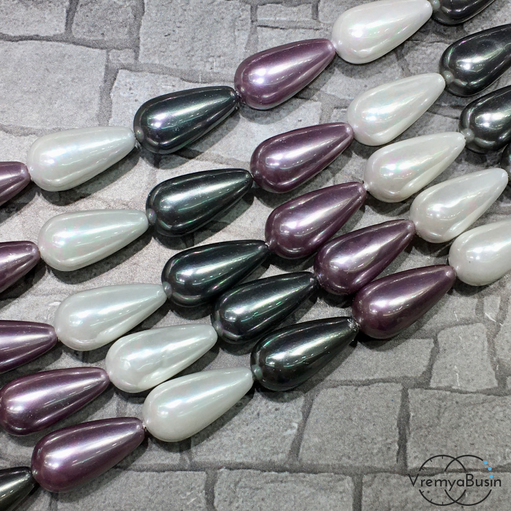 Бусины капли из стекла под жемчуг, 10х20 мм (1/2 нити, ок.10 шт.)
