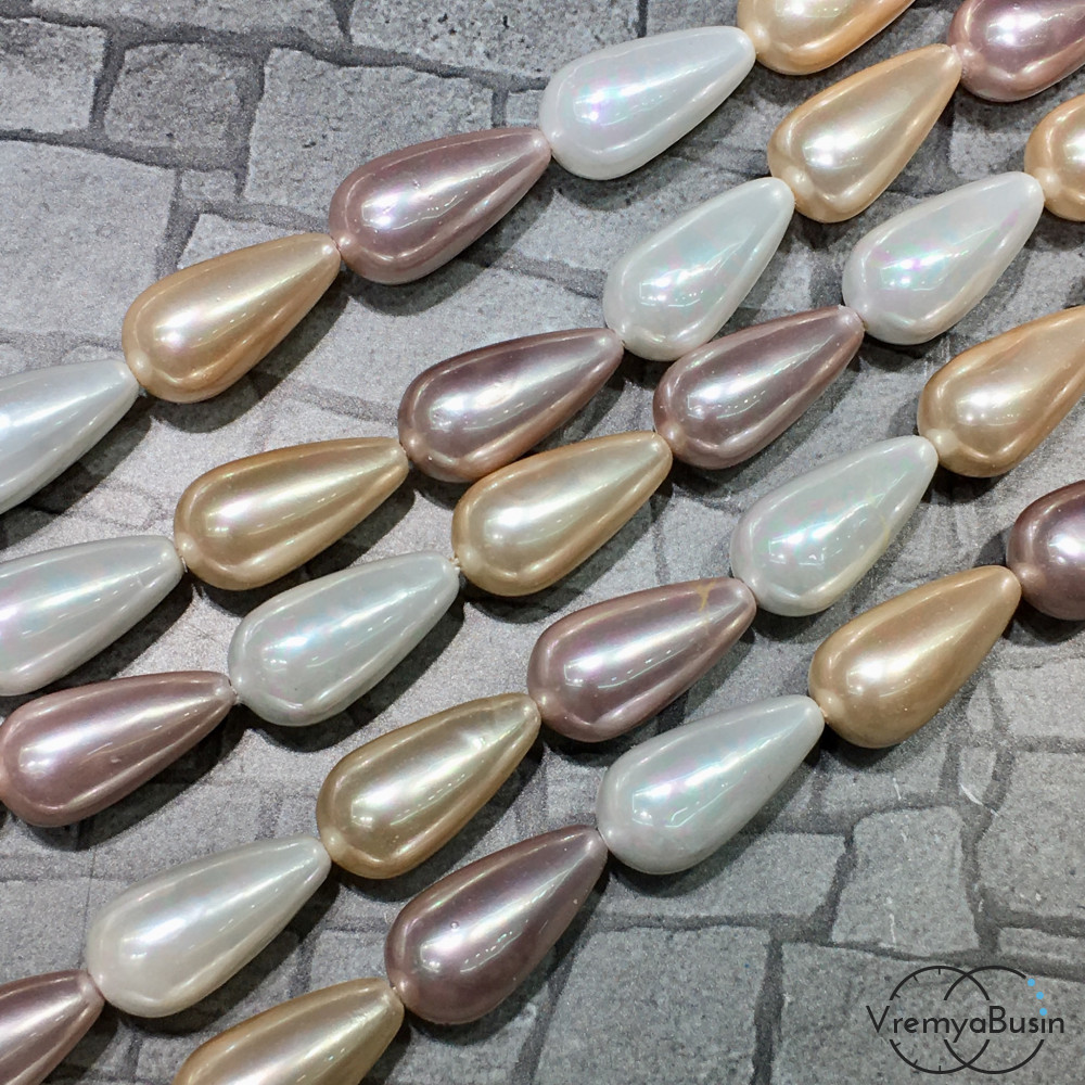 Бусины капли из стекла под жемчуг, 10х20 мм (1/2 нити, ок.10 шт.)