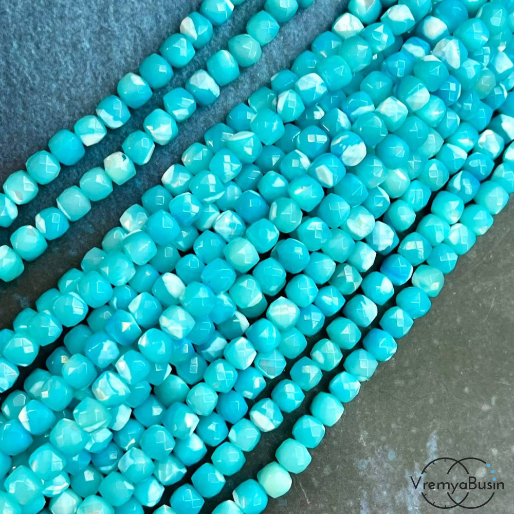 Перламутр натур., кубик граненый ок. 4.5 мм, цв. бирюзовый (1/2 нити, ок. 42 шт.)
