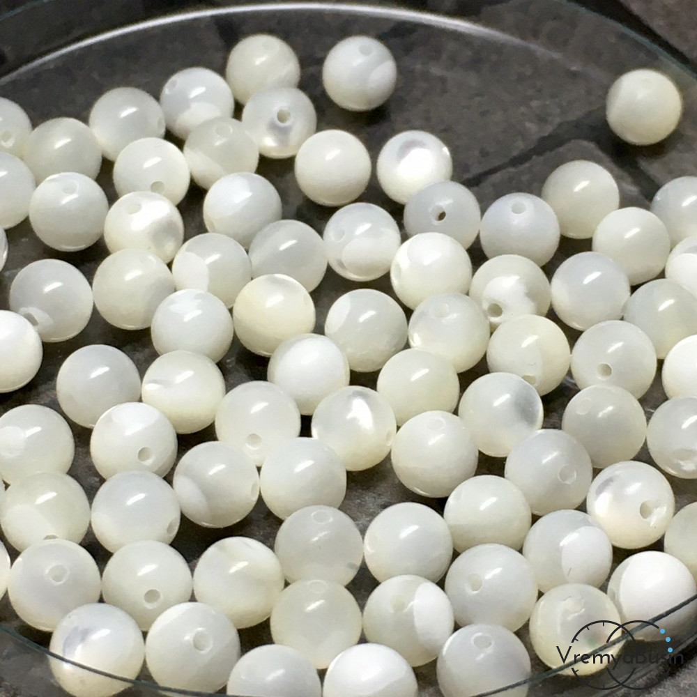 Перламутр натур., шарик гладкий белый, 4 мм (упак. 10 шт.)