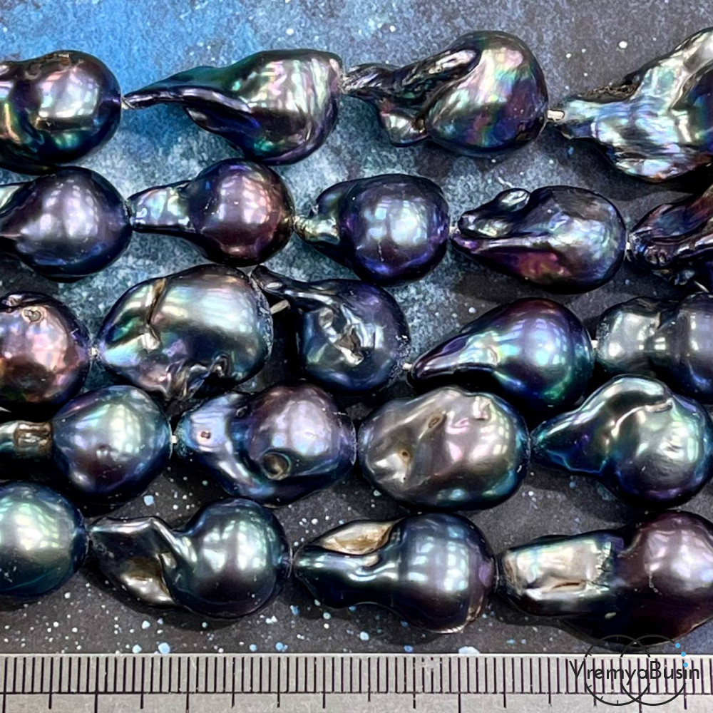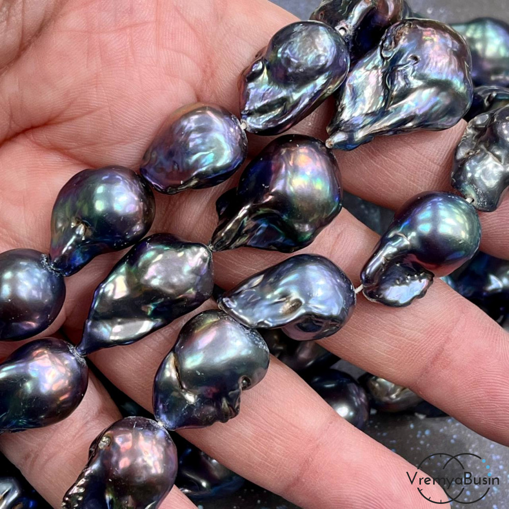 Жемчуг натуральный речной барочный, цв. черно-фиолетовый (1/2 нити, ок. 10 шт.)