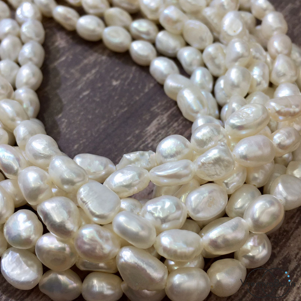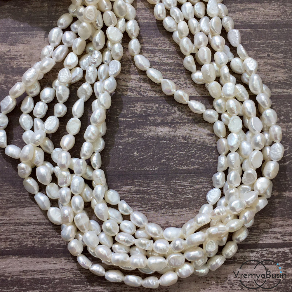 Жемчуг натуральный речной, барочный ок. 6х8 (нить, ок. 45 шт.)