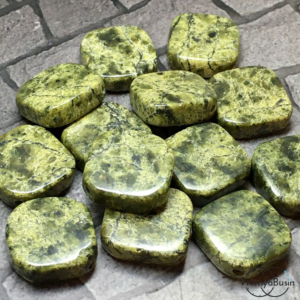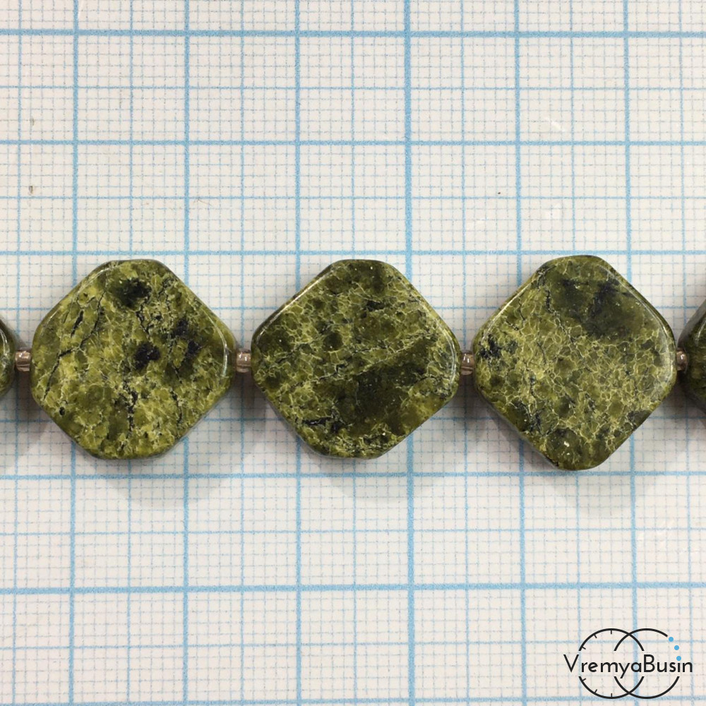 Змеевик уральский, ромб округлый плоский 18 мм (1 шт.)